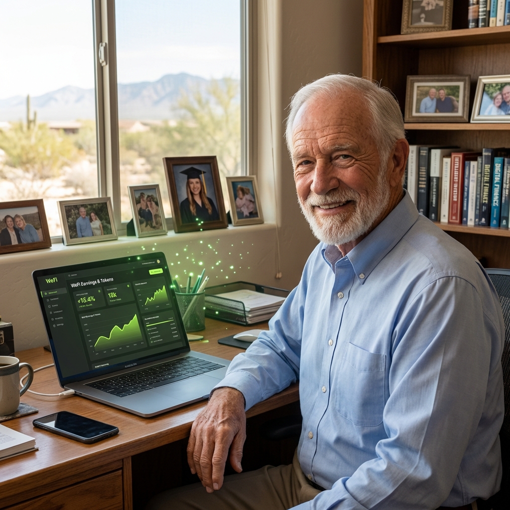 Jody, a seventy-nine-year-old retired finance executive in Nevada, found WeFi, a new decentralized bank concept, and jumped in. It’s right in his sweet spot: banking, networking, helping others build wealth. He invested early and started talking to his friends and family. Because it has a referral program, he earns NOW money on everyone who signs up.